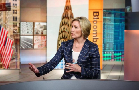 彼女は金融・経済ニュース番組のスタジオにいるようです。