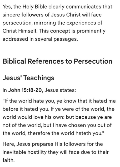 はい、聖書は、イエス・キリストの誠実な信者は迫害に直面することを明確に示しており、キリストご自身の経験を反映しています。この概念は、いくつかの箇所で明確に言及されています。
