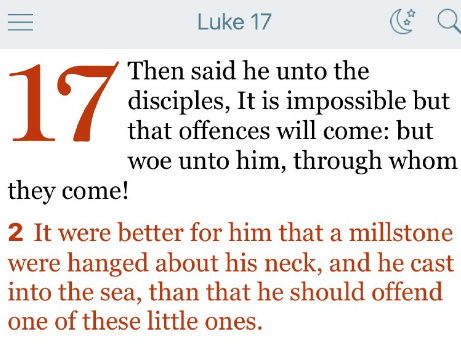 2 これらの幼子の一人でもつまずかせるよりは、石臼を首にかけられて海に投げ込まれた方がましだ。」
