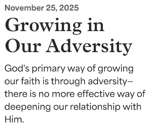 神が私たちの信仰を成長させる主な方法は、逆境を通してです。