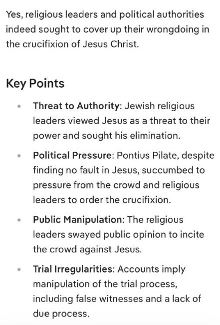 はい、宗教指導者と政治権力は、イエス・キリストの磔刑における自らの不正を隠蔽しようとしました。