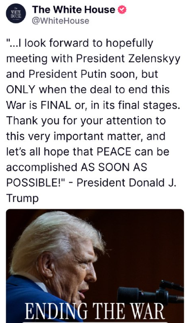 そして、平和が一日も早く実現することを、皆で願っています!」 – ドナルド・J・トランプ大統領