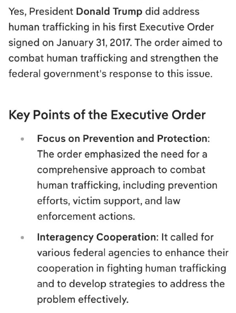 はい、ドナルド・トランプ大統領は、2017年1月31日に署名した初の大統領令で、人身売買問題に言及しました。この大統領令は、人身売買と闘い、連邦政府によるこの問題への対応を強化することを目的としていました。