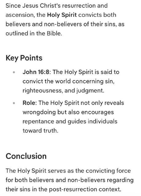 イエス・キリストの復活と昇天以来、聖霊は聖書に記されているように、信者と非信者の両方に罪を悟らせます。