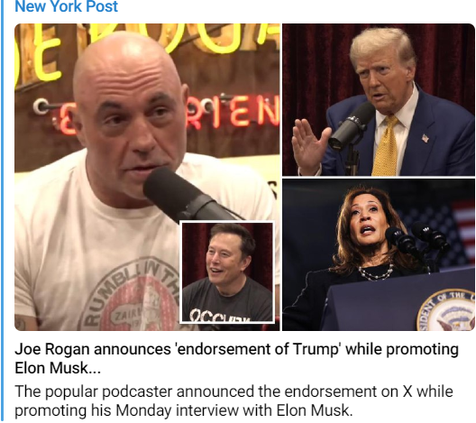 ジョー・ローガン、イーロン・マスクの宣伝中に「トランプ支持」を発表…