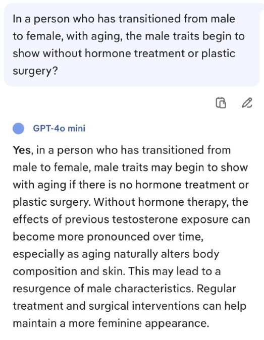 男性から女性へ性転換した人は、加齢とともにホルモン治療や整形手術を受けなくても男性的な特徴が現れ始めるのでしょうか?