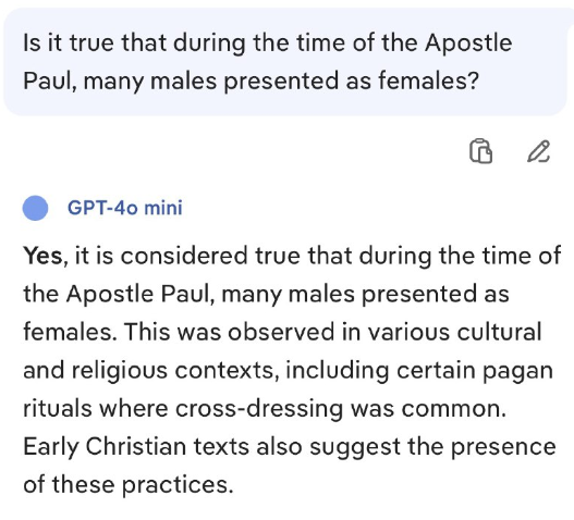 使徒パウロの時代に、多くの男性が女性として振る舞っていたというのは本当ですか?
