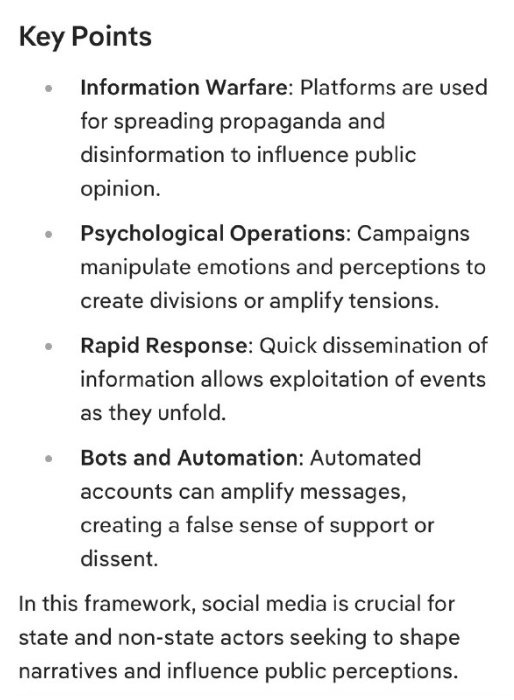 この枠組みにおいて、ソーシャルメディアは、国家および非国家主体が世論を形成し、世論に影響を与えようとする上で極めて重要です。
