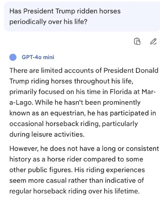 ドナルド・トランプ大統領が生涯を通じて乗馬をしたという記録は限られており、主にフロリダ州のマーラ・ラゴでの滞在に関するものです。彼は乗馬家として著名なわけではありませんが、特にレジャー活動の際に時折乗馬をしていました。しかし、他の著名人と比較すると、長く一貫した乗馬歴はありません。彼の乗馬経験は、生涯を通じて定期的に乗馬をしていたというよりは、むしろカジュアルなもののように思われます。