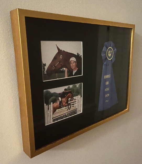 ※写っているのは、乗馬競技会での受賞記念フレームと考えられます。この種のディスプレイは、競技での成果を記念するための一般的な方法です。