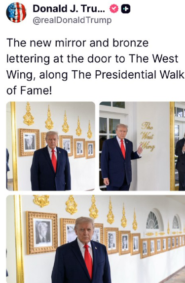 大統領執務室のすぐ外、列柱沿いに新たに設置されたこの展示では、額装された写真が展示されている。