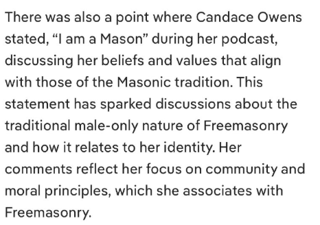 キャンディス・オーウェンズはポッドキャストの中で、「私はメイソンです」と発言し、フリーメイソンの伝統と一致する自身の信念と価値観について語りました。この発言は、フリーメイソンの伝統的な男性限定の性質と、それが彼女のアイデンティティとどのように関係しているかについて議論を巻き起こしました。彼女の発言は、彼女がフリーメイソンと結び付けているコミュニティと道徳的原則へのこだわりを反映しています。