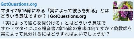 「あなたがたは、その実によって彼らを見分けるのです」(マタイによる福音書 7:16、NKJV)という記述は、真の信者を見分け、偽預言者を避けることに関するイエスの教えの一部です。15節から始まる文脈を読みます。「偽預言者に気をつけなさい。彼らは羊の皮を着てあなたがたのところに来るが、内側は貪欲な狼です。あなたがたは、その実によって彼らを見分けるのです。いばらからぶどうが、あざみからいちじくが採れるわけではありません。それと同じように、良い木はみな良い実を結び、悪い木は悪い実を結びます。良い木が悪い実を結ぶことはできず、悪い木が良い実を結ぶことはできません。良い実を結ばない木はみな切り倒されて、火に投げ込まれます。それで、あなたがたは、その実によって彼らを見分けるのです」(マタイによる福音書 7:15–20、NASB)。マタイによる福音書第7章は、人気の高い第1節から、岩の上に家を建てる賢い人についての有名なたとえ話(24-27節)まで、教えの宝庫です。21-23節で、イエスは、自分はイエスに属していると思い込んでいた多くの人々に、ぞっとするような告知をします。イエスは、最後の審判の日に、「わたしはあなたがたを全然知らない。わたしから離れ去れ」と言われるのを彼らが聞くだろうと警告しました(マタイ7:23)。その警告の直前に、イエスは、イエスに従うふりをしながらも、その生き方が別のことを示している人々を告発していました。イエスは、弟子たちに、彼らの生き方の「実」がその人の心の内にあるものを証明すると言いました(マルコ7:20-23参照)。