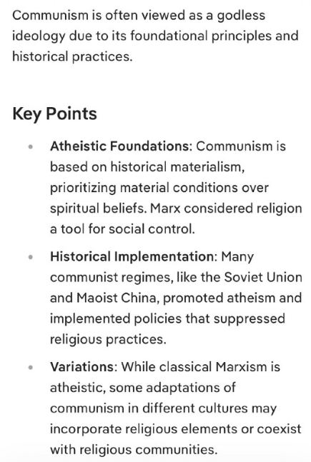 歴史的実施:ソビエト連邦や毛沢東時代の中国など、多くの共産主義政権は無神論を推進し、宗教的実践を抑圧する政策を実施しました。
