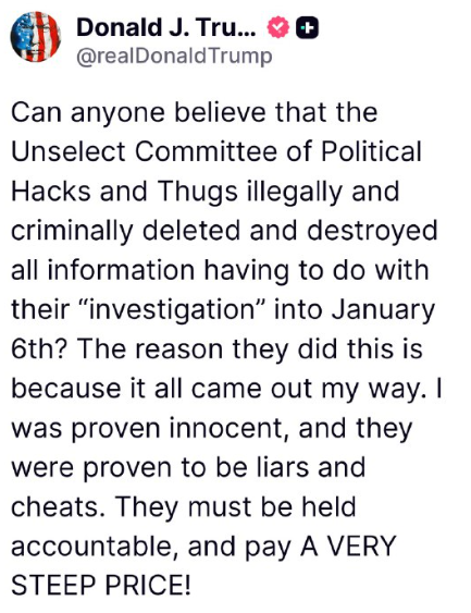 政治工作員と悪党の選抜委員会が、1月6日の「調査」に関するすべての情報を違法かつ犯罪的に削除・破棄したなんて、信じられますか?