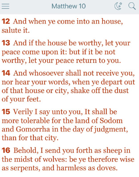 狼の真ん中に羊がいるように遣わす。だから、蛇のように賢く、鳩のように素直であれ。