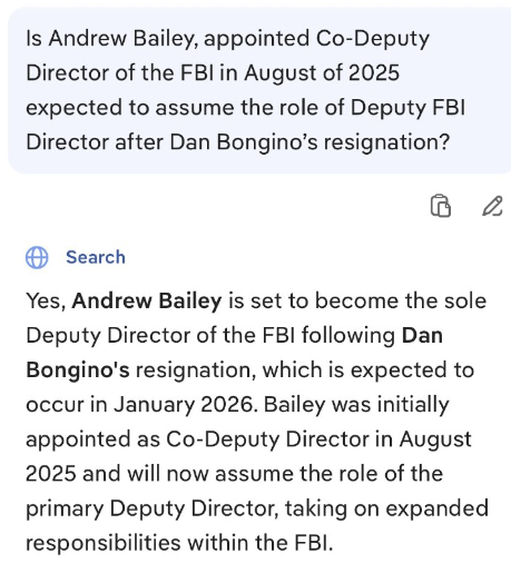 2025年8月にFBI共同副長官に任命されたアンドリュー・ベイリー氏は、ダン・ボンジーノ氏の辞任後、FBI副長官に就任する予定ですか?