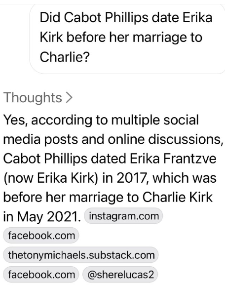 キャボット・フィリップスは、チャーリー・カークと結婚する前にエリカ・カークと交際していましたか?
