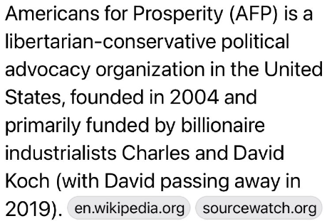 主に億万長者の実業家チャールズ・コッホとデビッド・コッホによって資金提供を受けています(デビッドは2019年に亡くなりました)。en.wikipedia.org sourcewatch.org