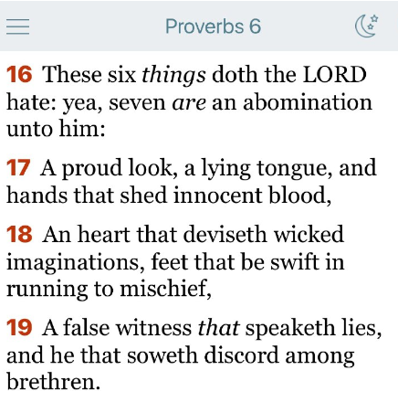 17節 高慢な目、偽りの舌、罪のない者の血を流す手、