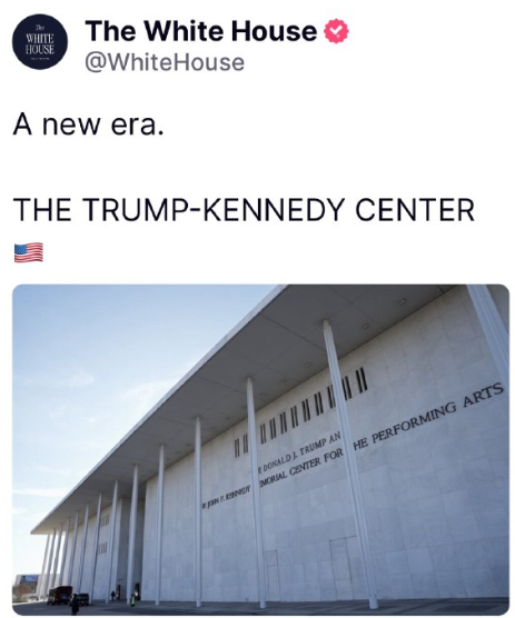 ジョン・F・ケネディ・センター の理事会は木曜日、施設名を元大統領とドナルド・トランプ大統領にちなんで変更することを決議した「ケネディ・センター理事会は本日、同センターをドナルド・J・トランプおよびジョン・F・ケネディ記念舞台芸術センターと命名することを満場一致で決定しました」と広報担当のローマ・ダラビ氏は声明で述べ、この名称はトランプ氏が2期目の早い時期に就任して以来、同センターで行ってきた功績を称えるものだと付け加えた。