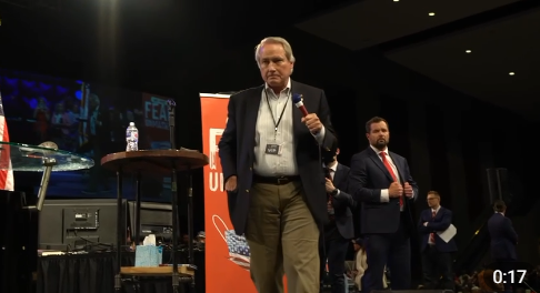米国のイベント「AMERICAFest 2025 別名AMFEST 2025」の多数の講演者の中で、誰がステージ上でスポットライトを浴びながら小児性愛と児童性的人身売買について語っていたのか、誰か教えてもらえませんか?