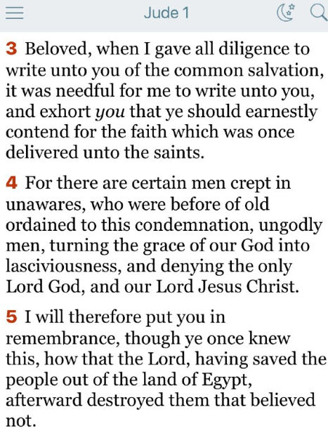 あなたがたに書き送って、聖徒たちに一度伝えられた信仰のために熱心に戦うように勧める必要が生じたのです。