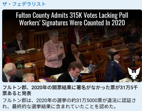 フルトン郡は、2020年の選挙の約31万5000票が違法に認証さ