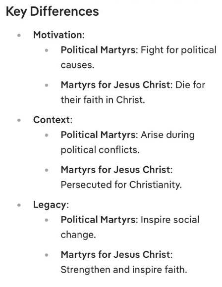 イエス・キリストの殉教者:キリストへの信仰のために命を落とす。