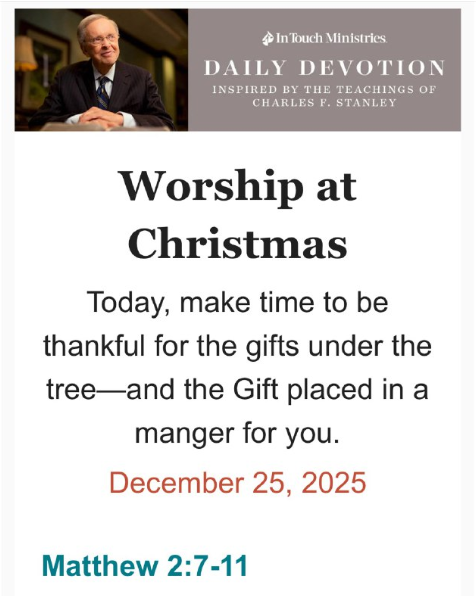 ですから、どうかクリスマスについて議論するのはやめ、キリスト教の信仰に少しでも関連のある祝日があることに感謝しましょう…そして、誰かに福音を伝えるための容易な架け橋となる祝日があることに感謝しましょう。S