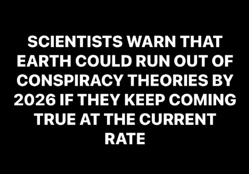 科学者たちは、現在のペースで陰謀論が真実になり続ければ、2026年までに地球上の陰謀論が枯渇する可能性があると警告している。