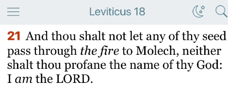 子供をモロクに犠牲として捧げる習慣は、聖書の旧約聖書に記されています。