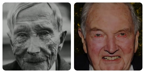 左の人物はジョン・D・ロックフェラー、右の人物はデイヴィッド・ロックフェラーである。