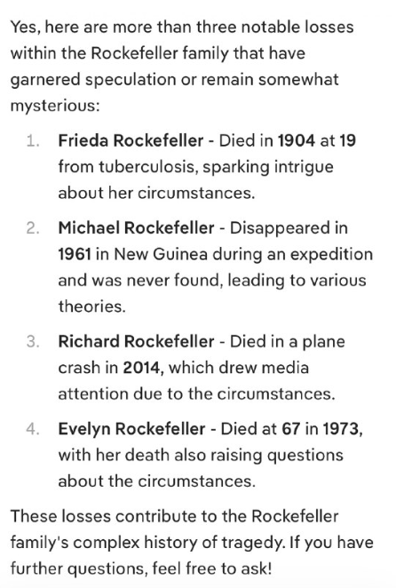 はい、ロックフェラー家における注目すべき死は3つ以上あり、憶測を呼んだり、いまだに謎に包まれています。