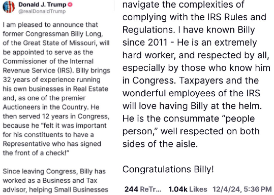 トランプ大統領はフランク・ビシニャーノを第2次政権の役職に任命したのか???