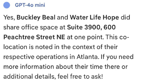 はい、Buckley Beal(※アンドリュー・ビールが所属する法律事務所)とWater Life Hopeはかつて