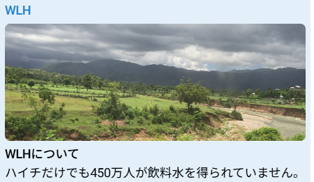 ウォーター・ライフ・ホープは、清潔で安全な飲料水へのアクセスという基本的人権の実現に尽力する501(c)(3)団体です。私たちの使命は、支援が必要な地域に井戸、貯水池、浄水システムを建設することです。ウォーター・ライフ・ホープは、ハイチの農村部全域に300基以上の自噴井戸を設置してきました。各井戸は最大5,000人に清潔で安全な飲料水を供給することができます。井戸の設置場所は、地域社会へのアクセスが良好な場所が選ばれており、商業や社会活動の中心地となることも少なくありません。