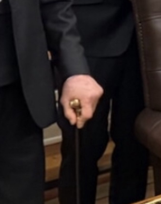 ※杖を使用している。指が不自然に太すぎる