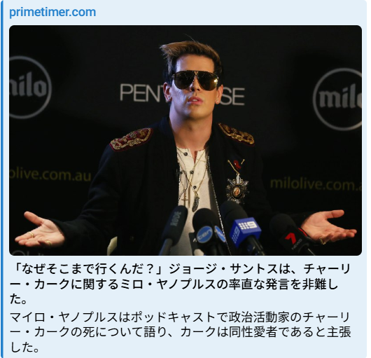 マイロ・ヤノプルスはポッドキャストで政治活動家のチャーリー・カークの死について語り、カークは同性愛者であると主張した。