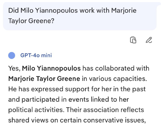 マイロ・ヤノプルスはマージョリー・テイラー・グリーンと仕事をしたことがありますか?