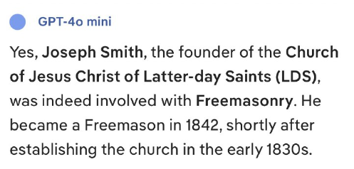 確かにフリーメイソンリーに関わっていました。彼は1830年代初頭に教会を設立した直後の1842年に