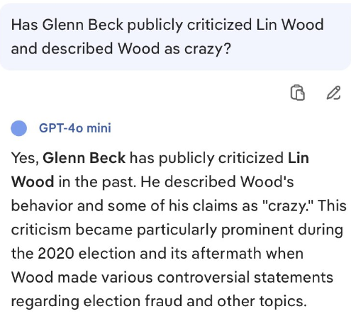 グレン・ベックはリン・ウッド氏を公に批判し、ウッド氏を「狂人」と呼んだことがありますか?