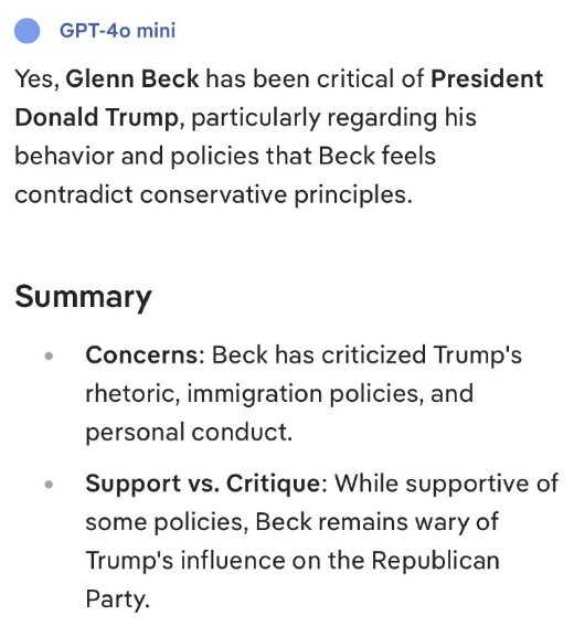 支持と批判:ベック氏は一部の政策を支持していますが、共和党に対するトランプ大統領の影響については依然として警戒しています。