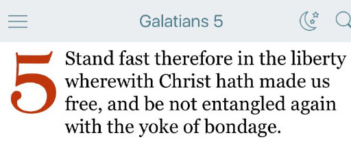ですから、キリストが私たちを自由にしてくださった自由を堅く保ちなさい。