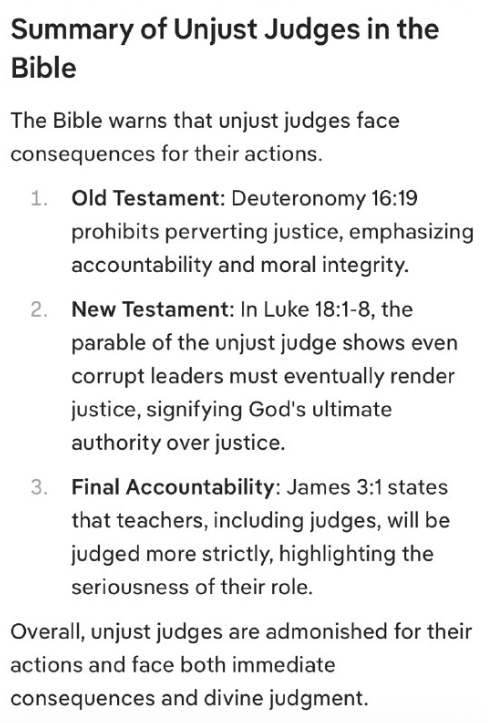 聖書は、不正な裁判官がその行為の報いを受けることを警告しています。
