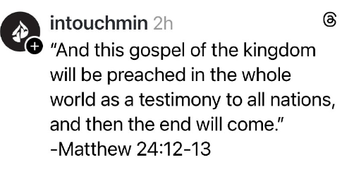 「そして、この御国の福音は、全世界に宣べ伝えられ、