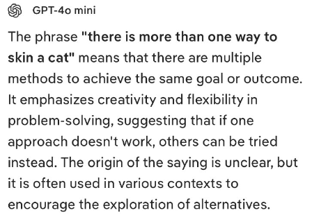 「猫の皮を剥ぐには複数の方法がある」という表現は、同じ目標や結果を達成する方法が複数あることを意味します。