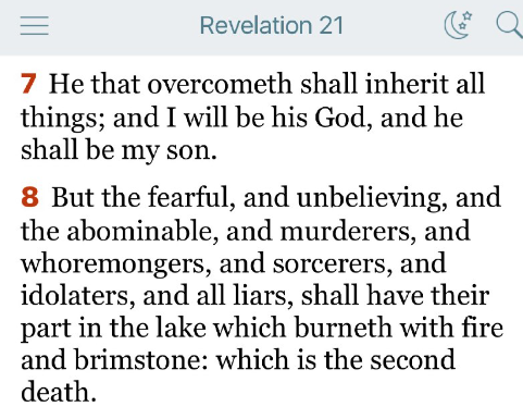 悔い改めない嘘つきは火の池、つまり第二の死に行き着きます。