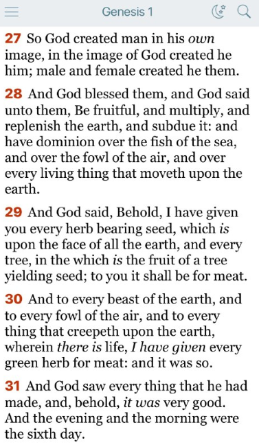 27節 神は人を創造された。神のかたちに創造された。男と女に創造された。