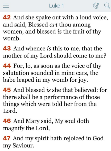 44 見よ、あなたの挨拶の声が私の耳に入った途端、胎内の子が喜び躍りました。